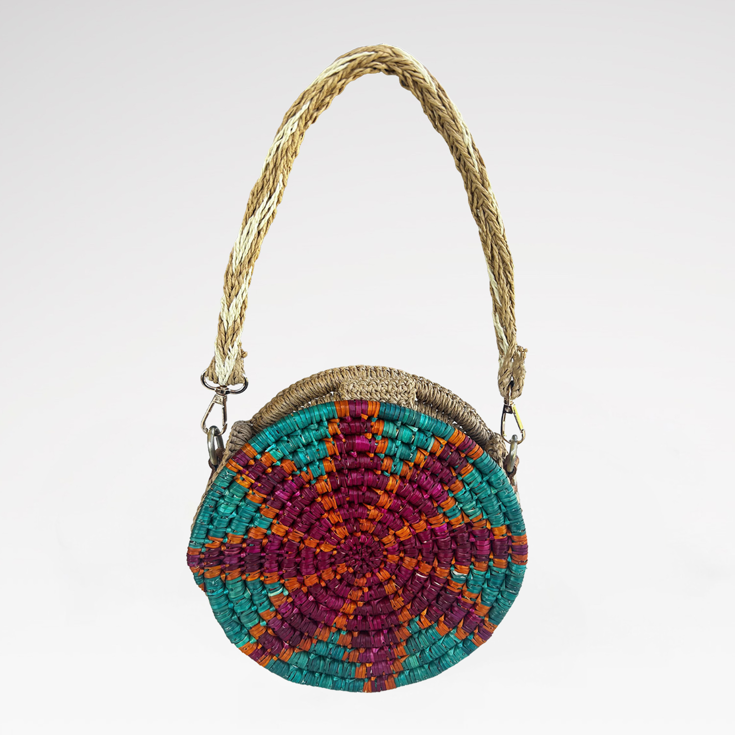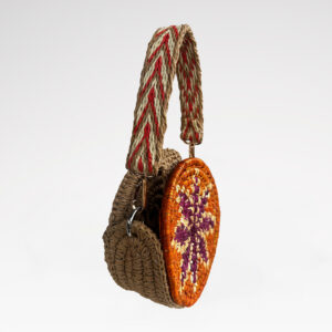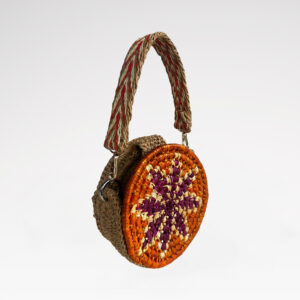 Cimem örücülüğüyle örülen çantanın kulpları ise geleneksel Çarpana dokuma tekniğiyle örülmüştür.