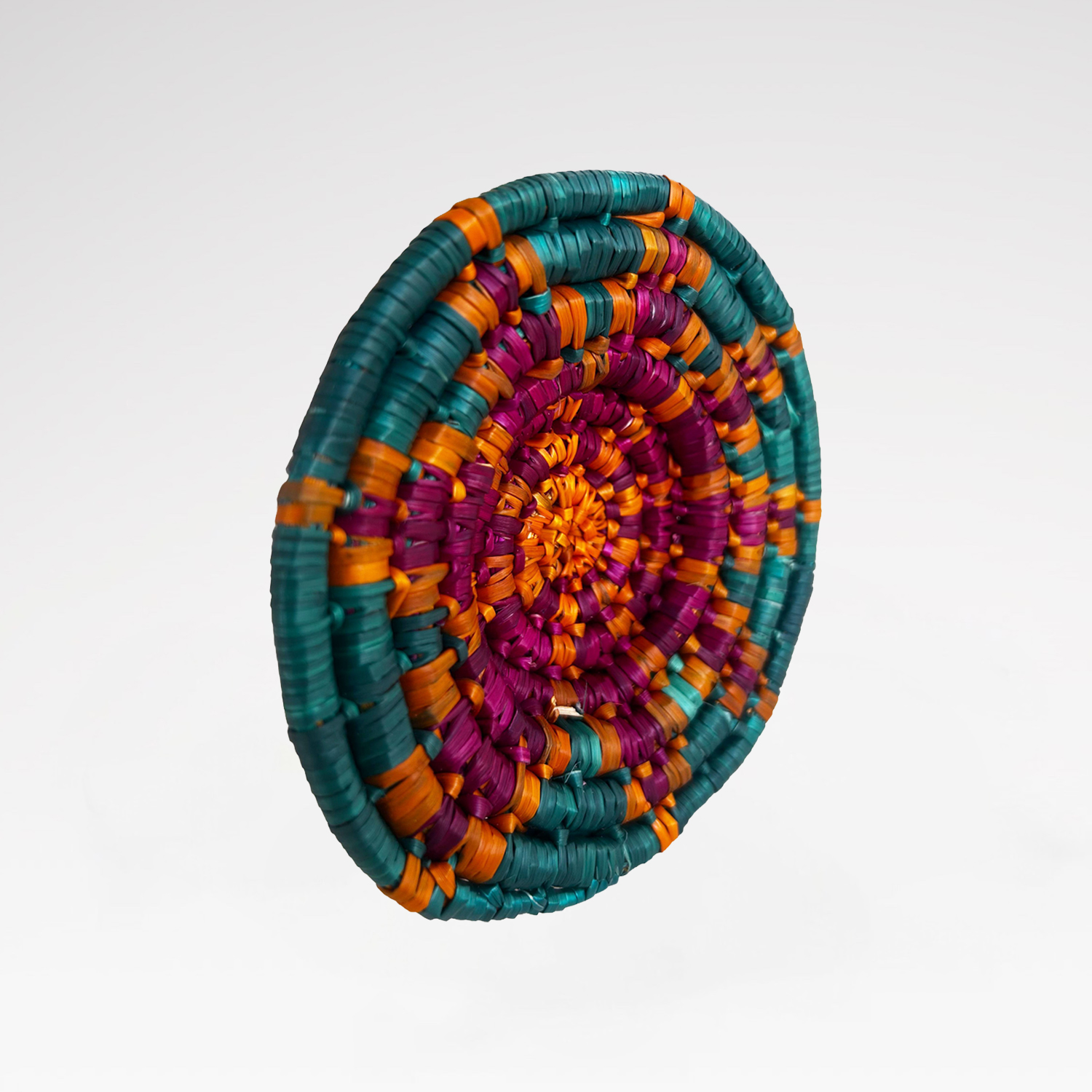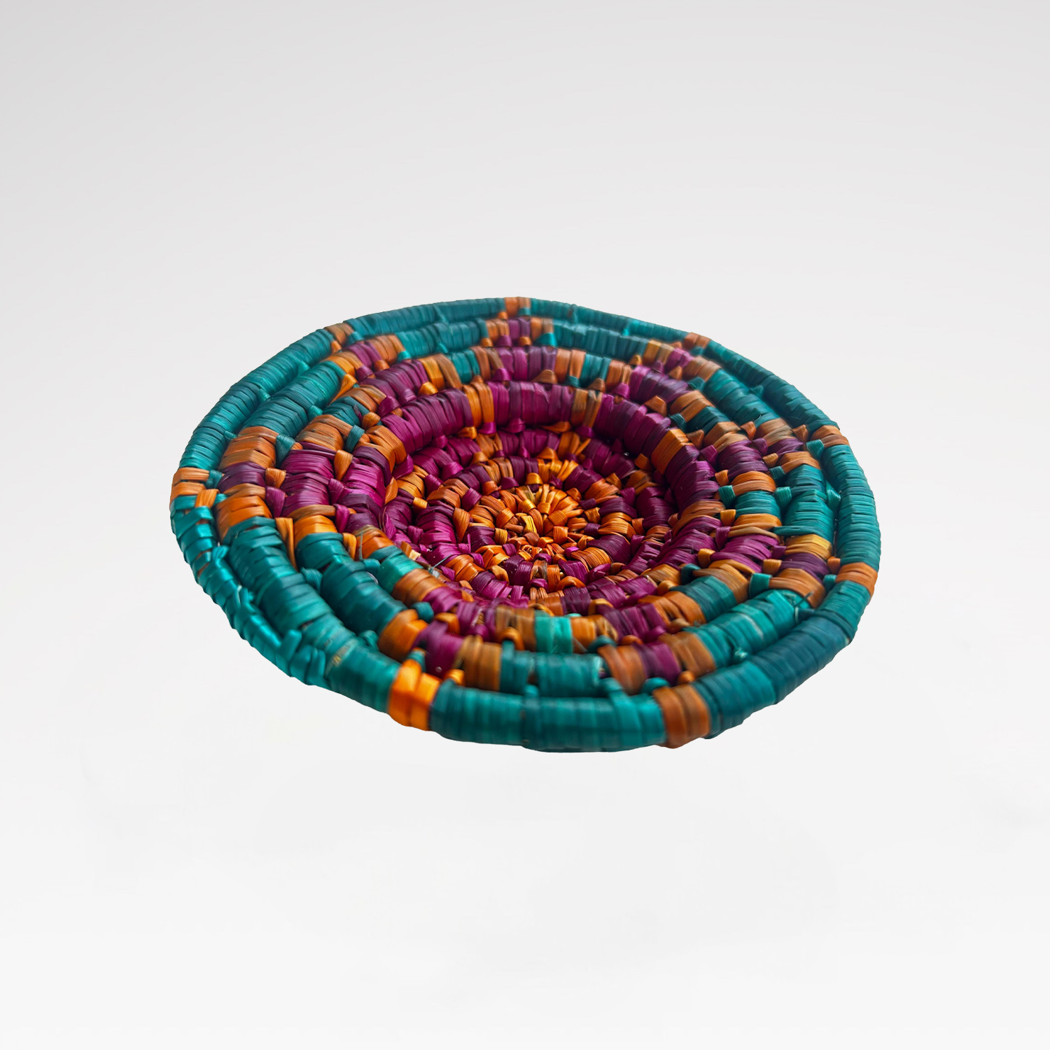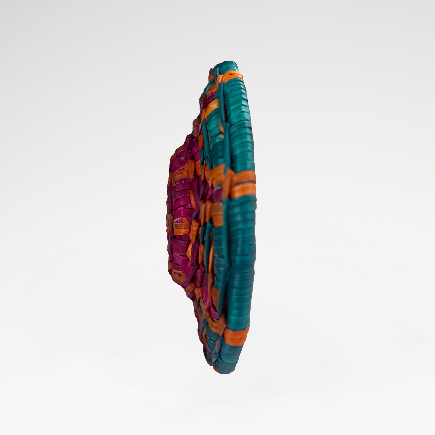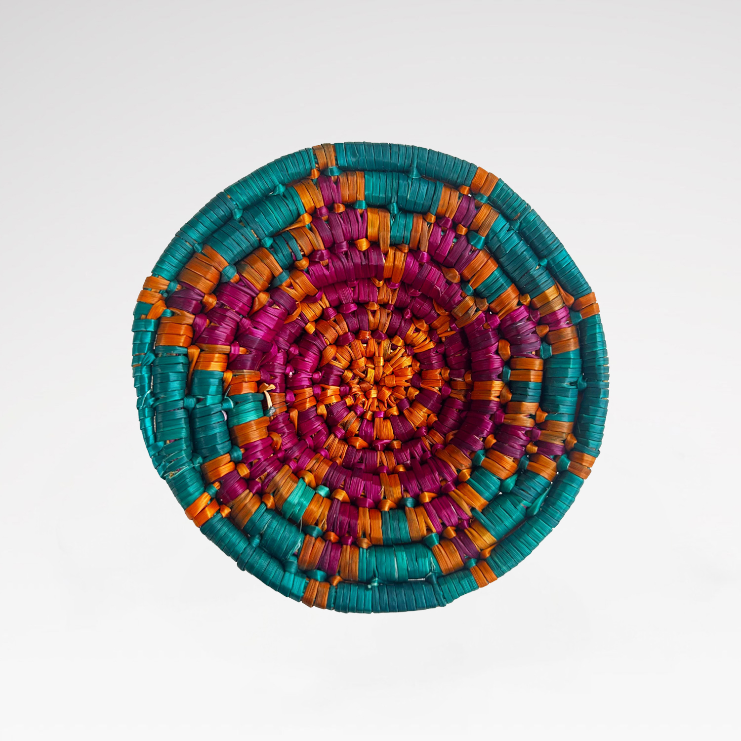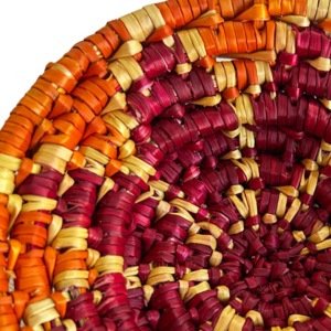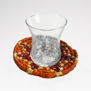 Doğal buğday saplarının Geleneksel Cimem Örücülüğü tekniğiyle örülmüştür.
