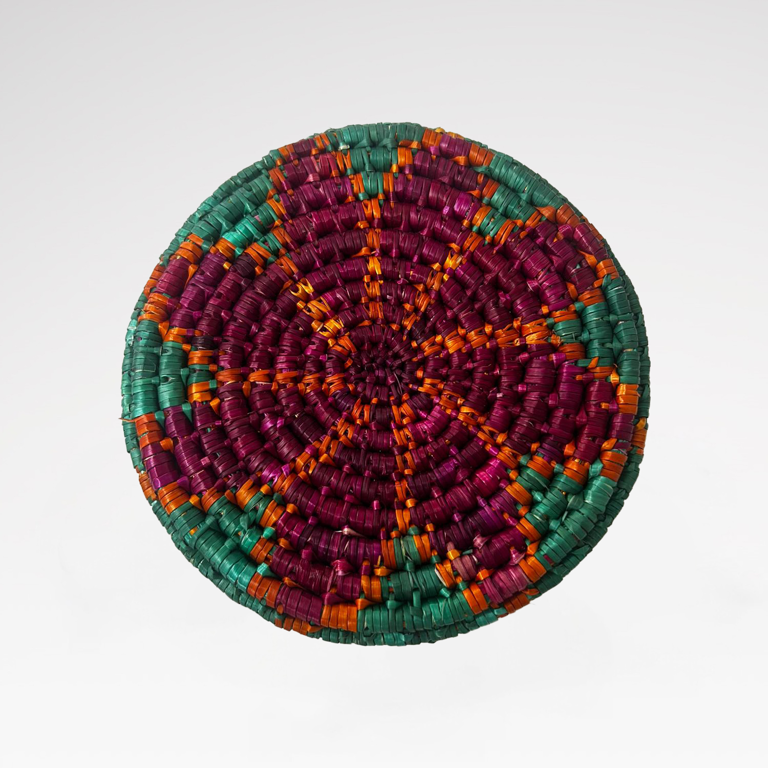 Doğal buğday saplarının Geleneksel Cimem Örücülüğü tekniğiyle örülmüştür.