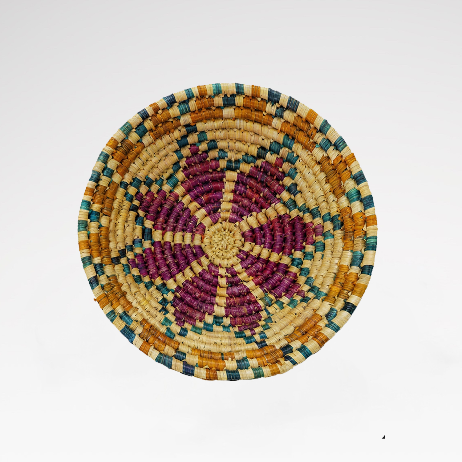 Doğal buğday saplarının Geleneksel Cimem Örücülüğü tekniğiyle örülmüştür.