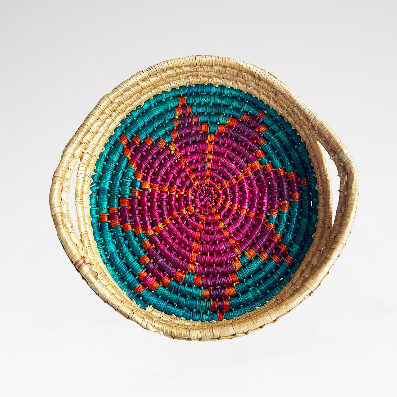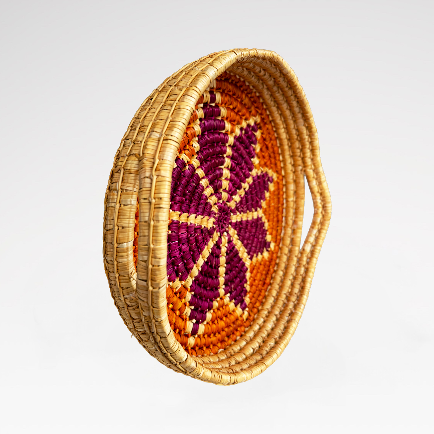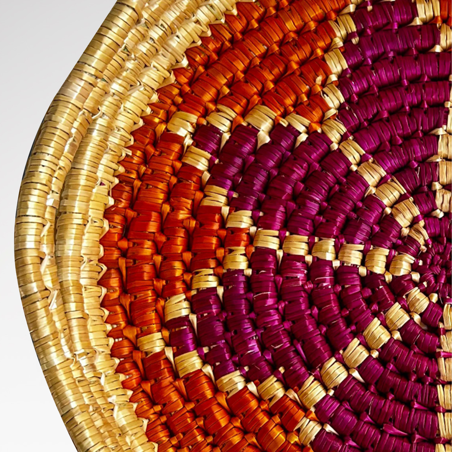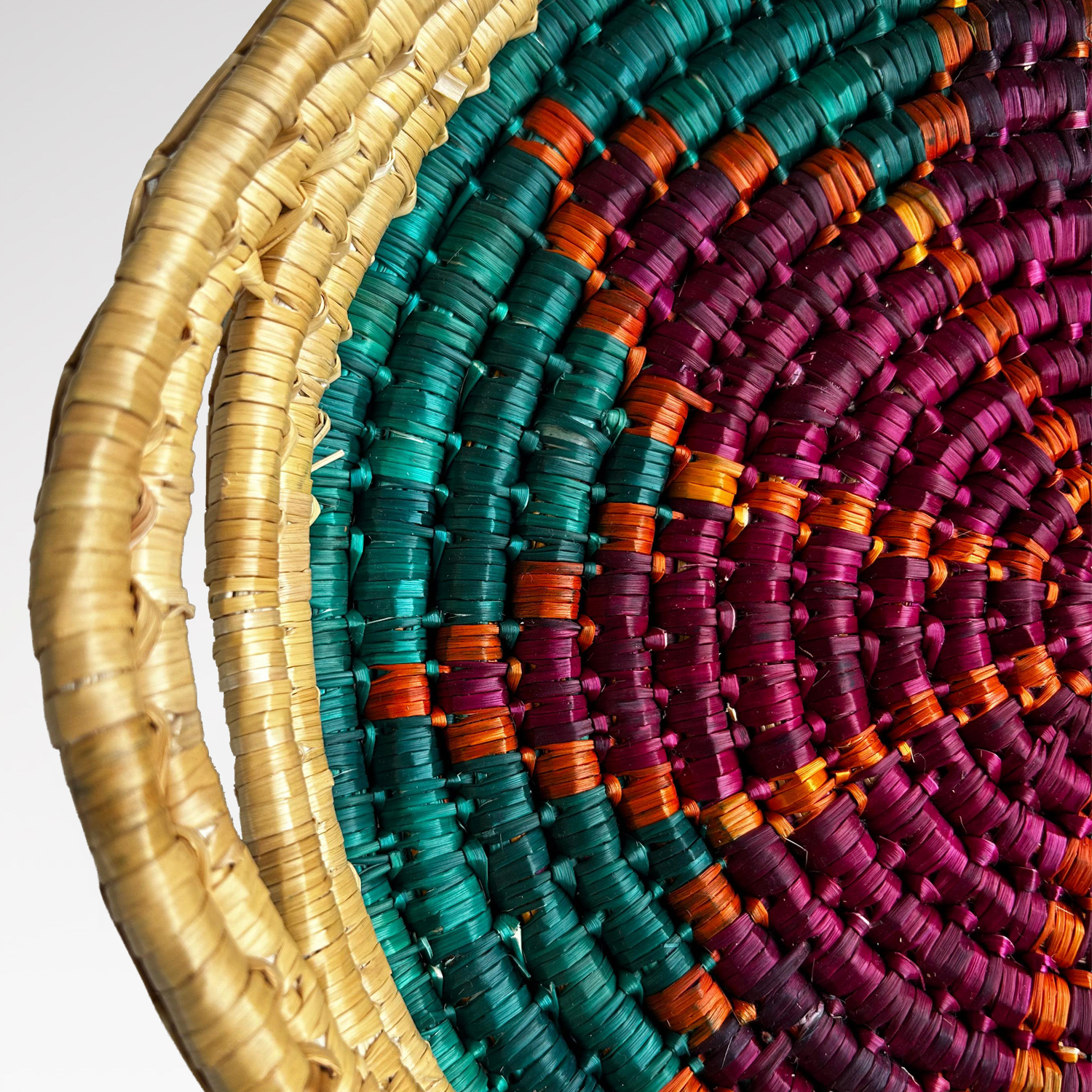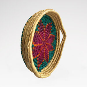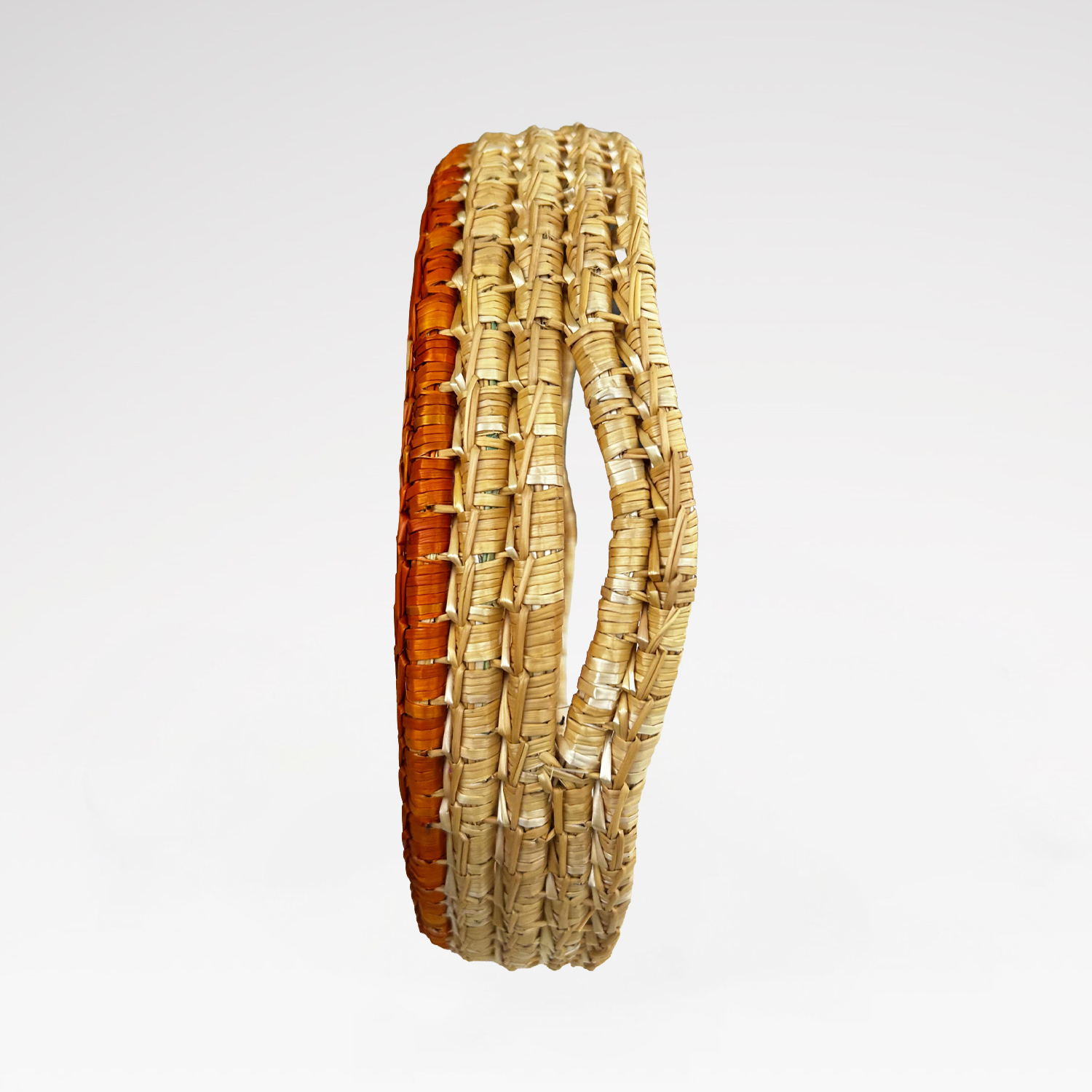 Doğal buğday saplarının Geleneksel Cimem Örücülüğü tekniğiyle örülmüştür.